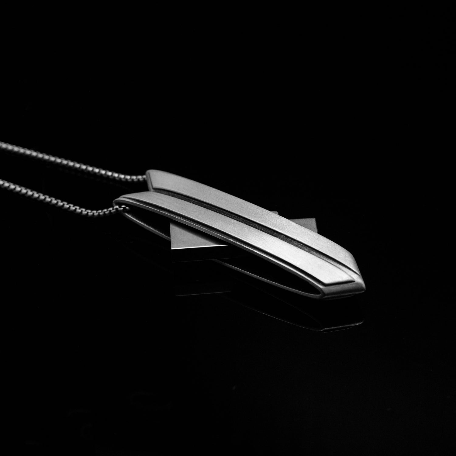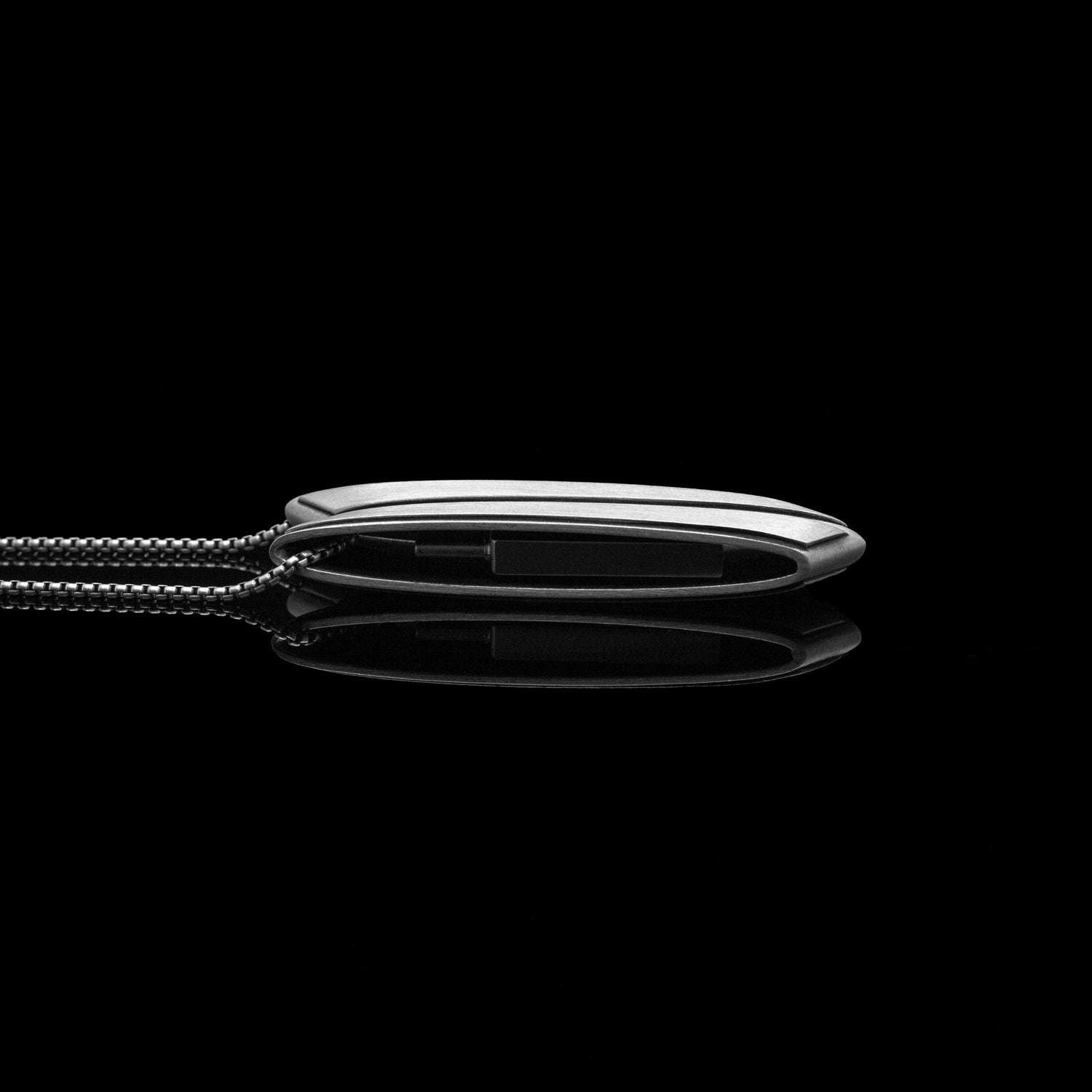 Fabricated from .925 silver, this unisex design is locally crafted in equal parts by machine and hand. Uniquely painted oxidation over satin finish.
