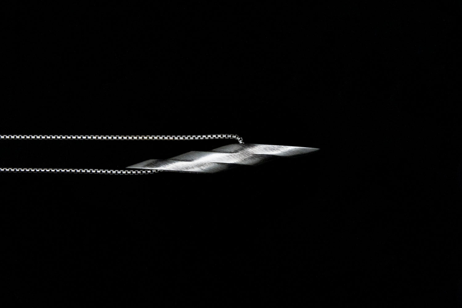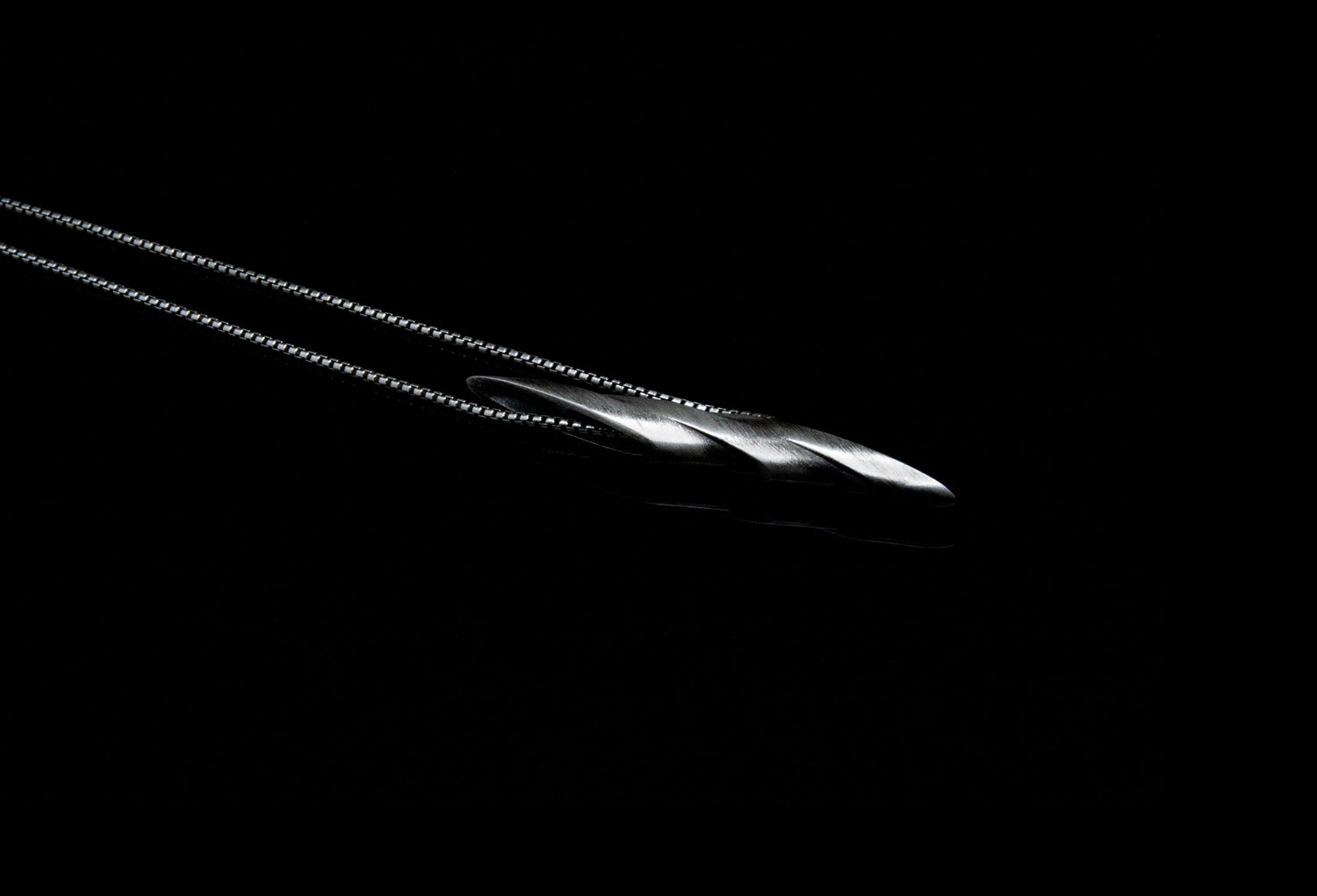 Pendant dimensions are 65 x 12 x 6.5mm made from 8 grams of sterling silver on a 30" 1.55mm round box chain with lobster closure and tag.
