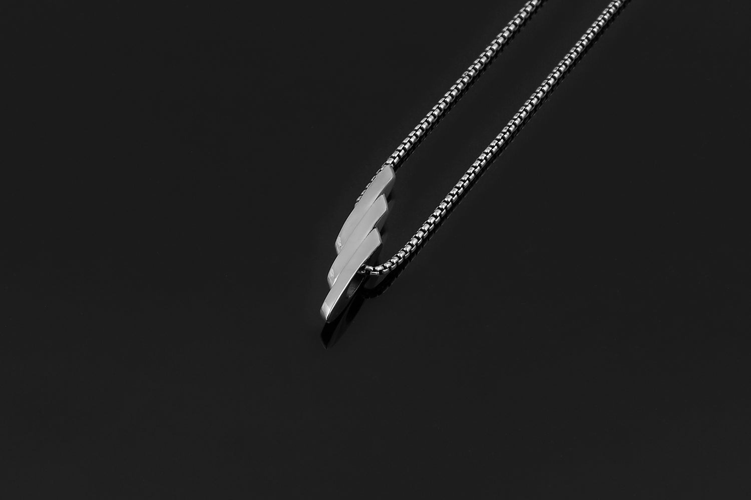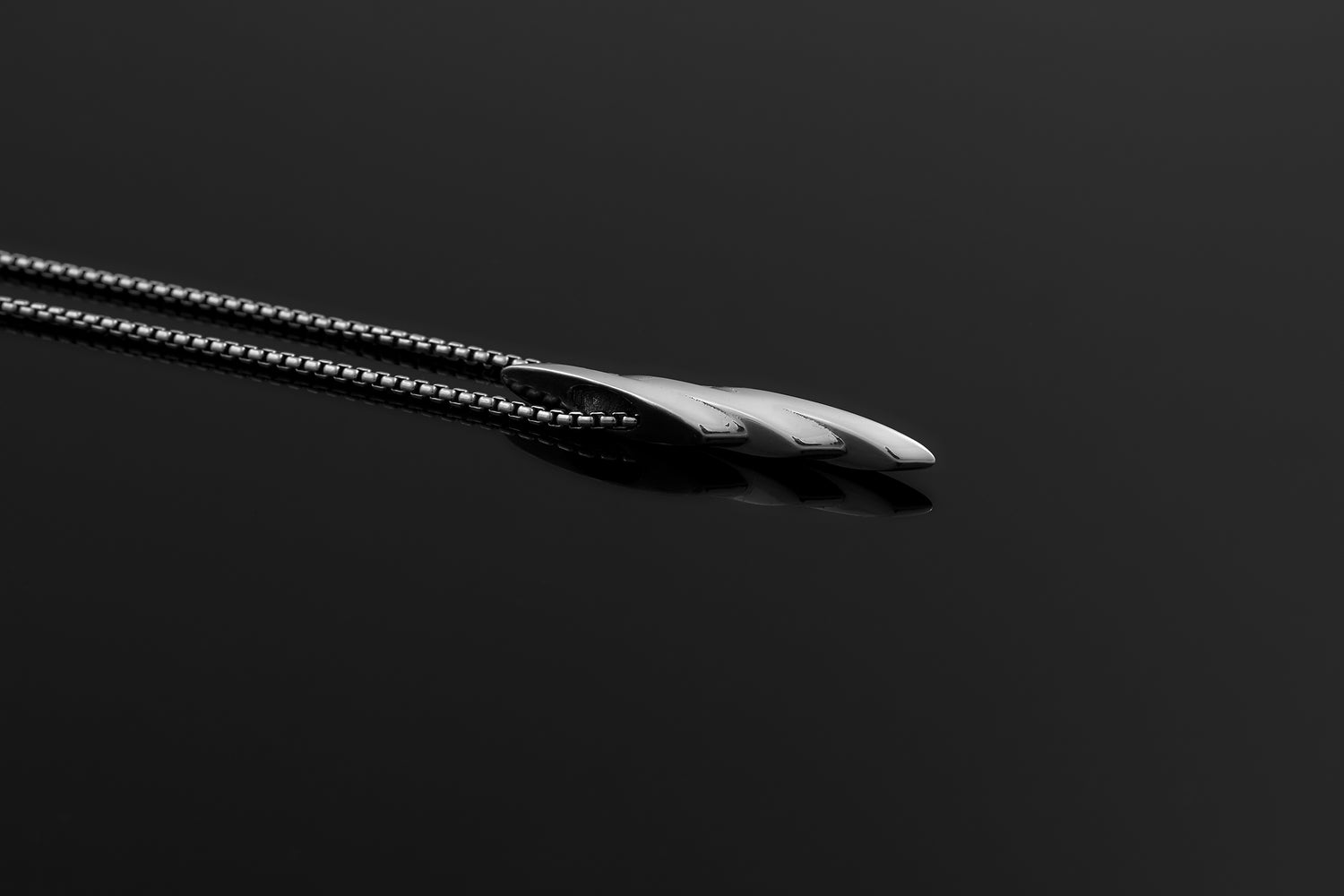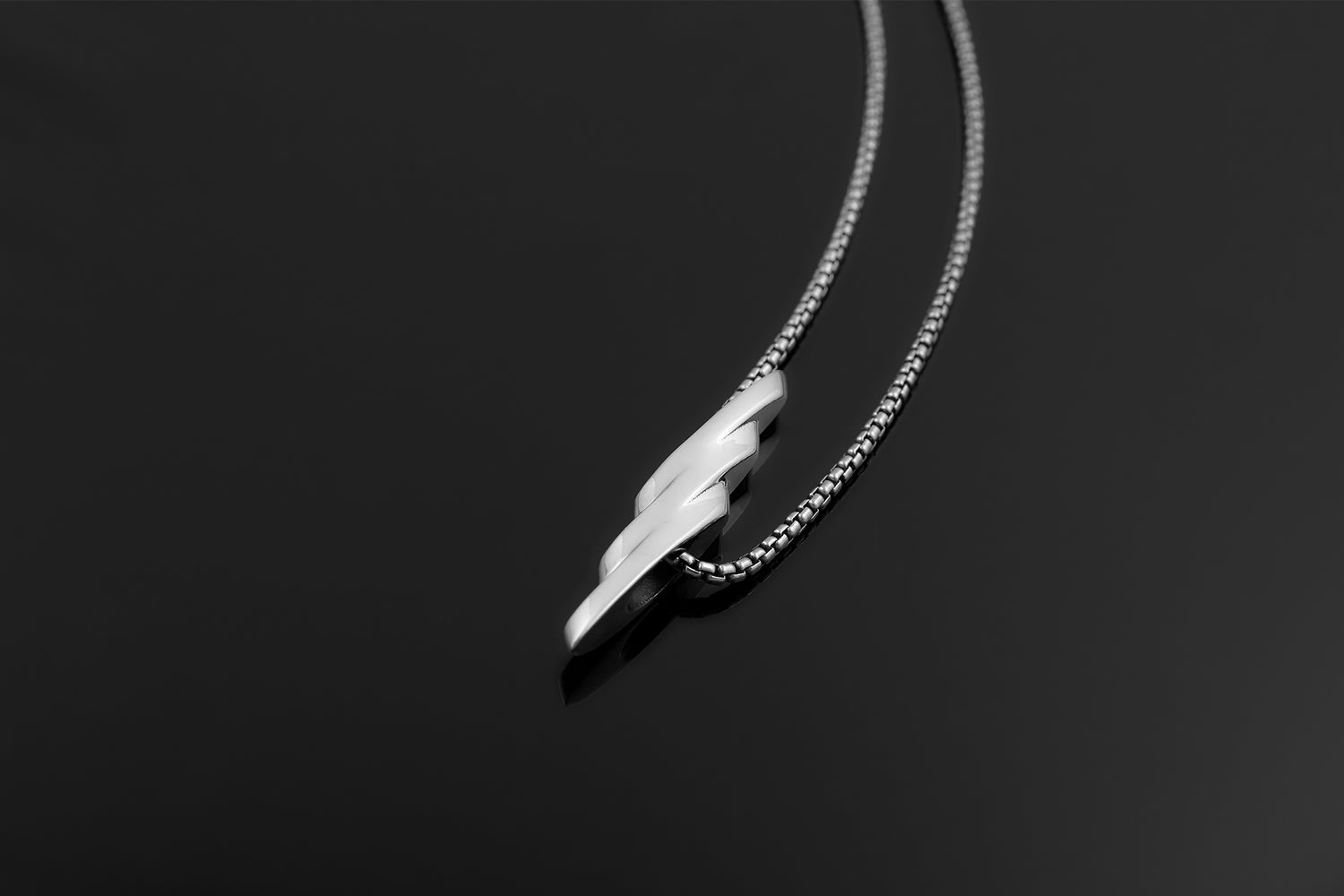 Pendant charm dimensions are 40 x 7 x 4.5mm made from 11 grams of sterling silver on a 24” 1.8mm round box chain with lobster closure and tag.