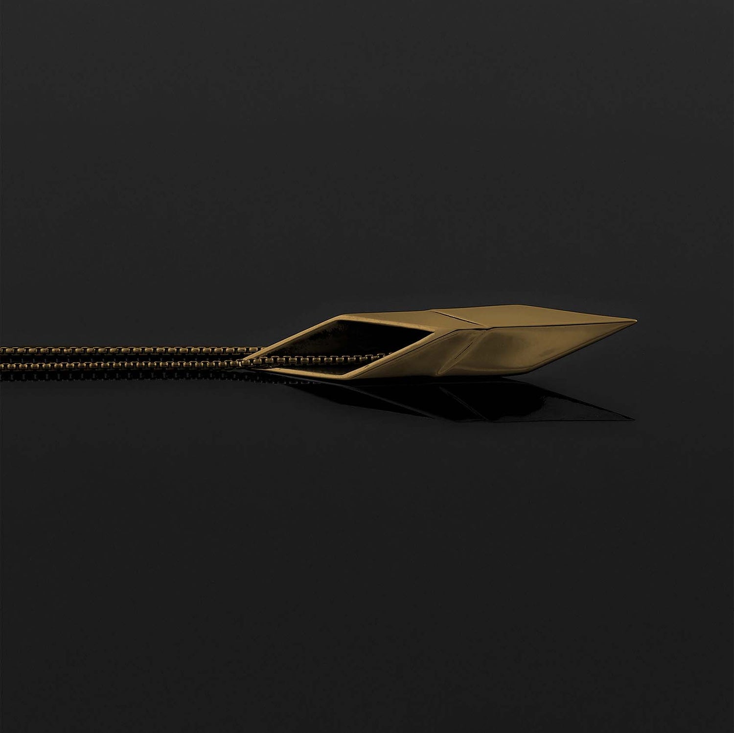 Pendant dimensions are 69 x 13 x 10mm made from 10 grams of brass on a 30” 1.8mm round box chain with lobster closure and tag.
