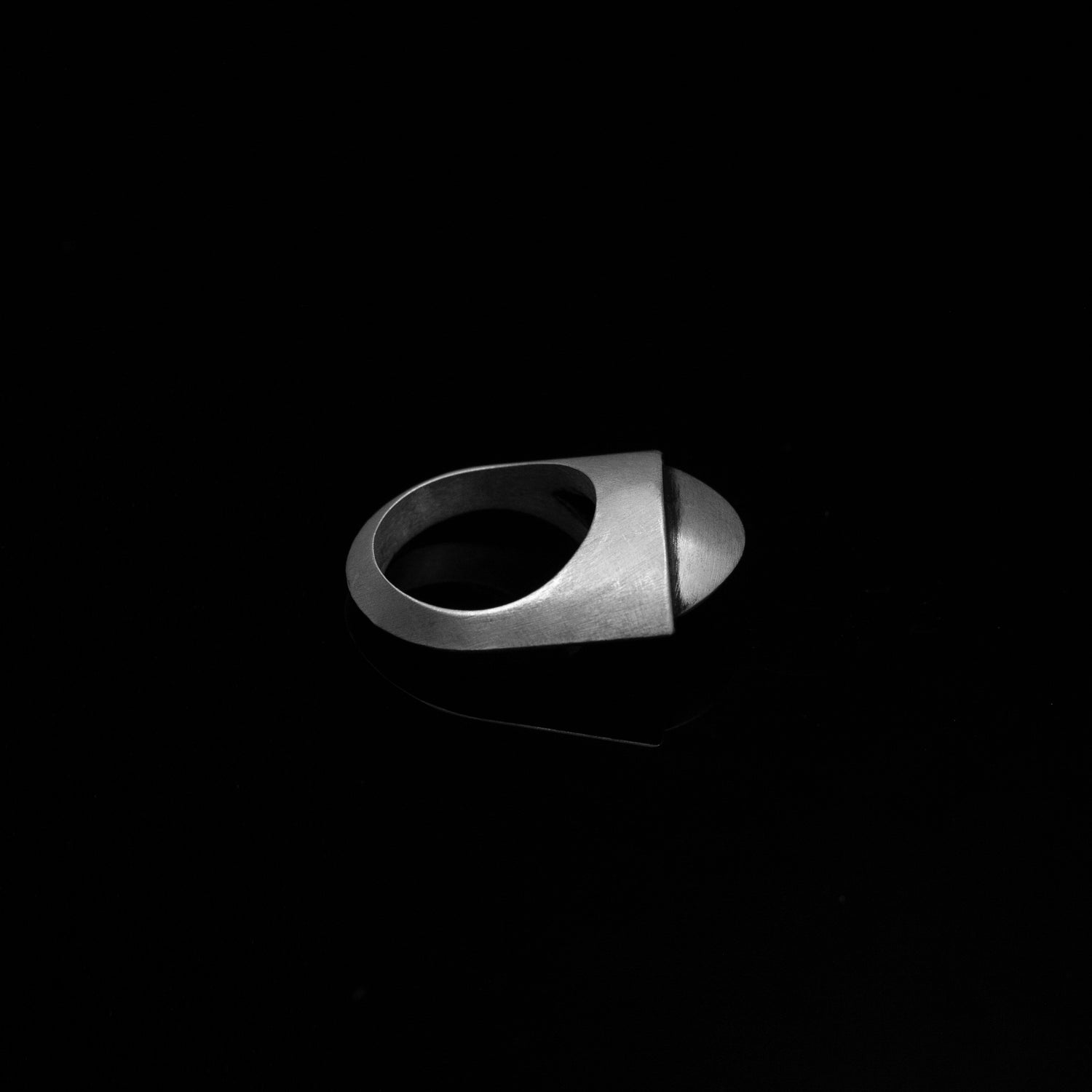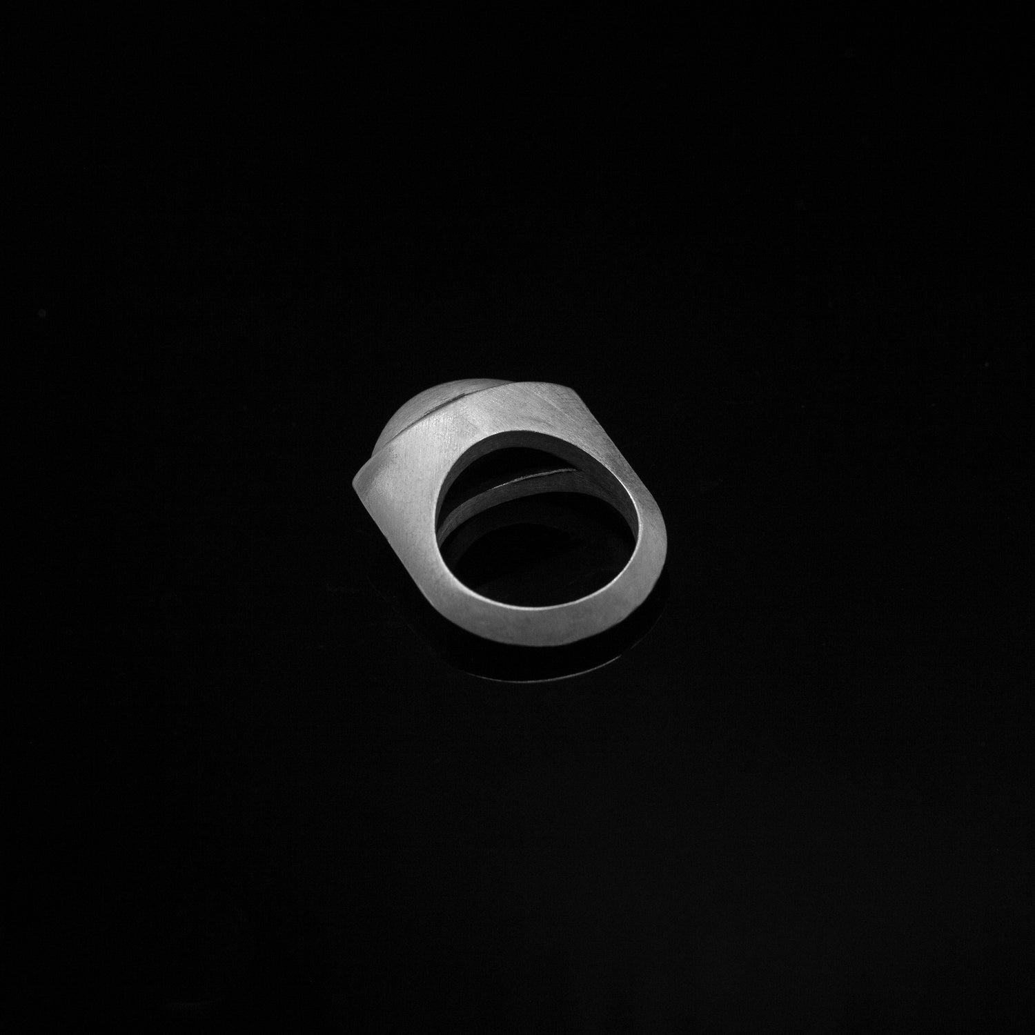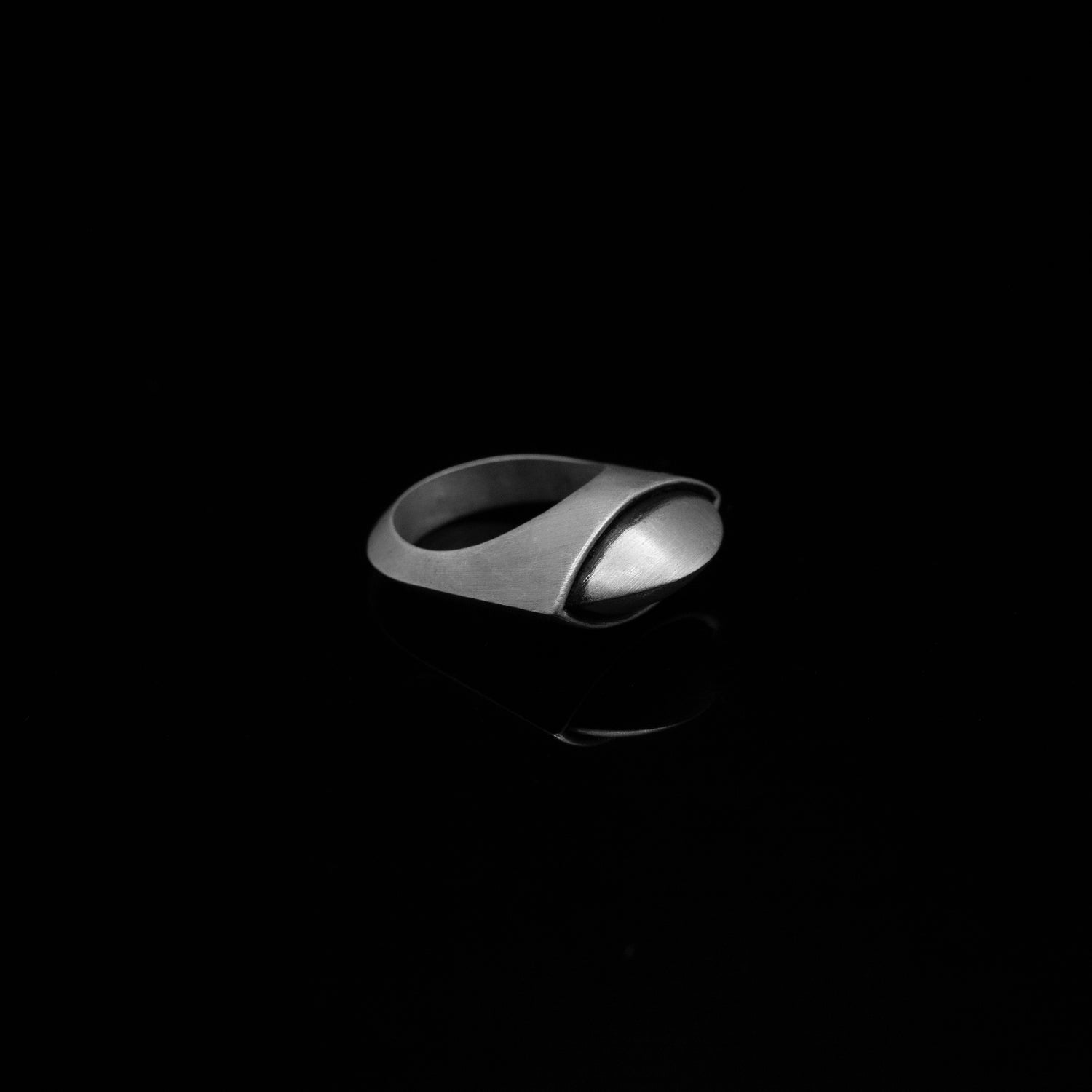 Fabricated from .925 silver, this unisex design is locally crafted in equal parts by machine and hand. Uniquely painted oxidation over satin finish.