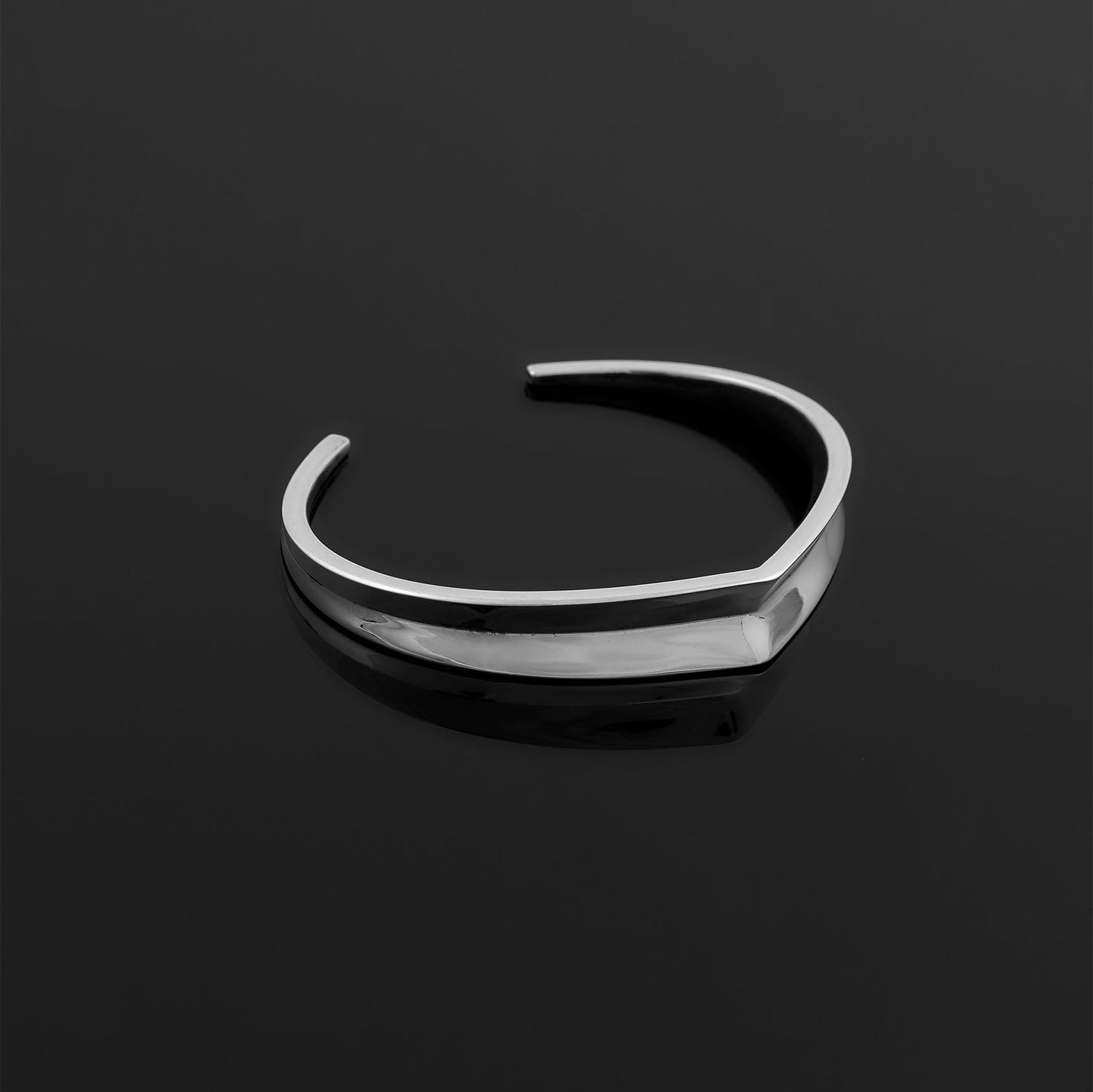 Bangle dimensions are 66 x 55 x 10mm made from 34 grams of sterling silver. Available in sizes Small: 55mm, Medium: 60mm, Large: 65mm