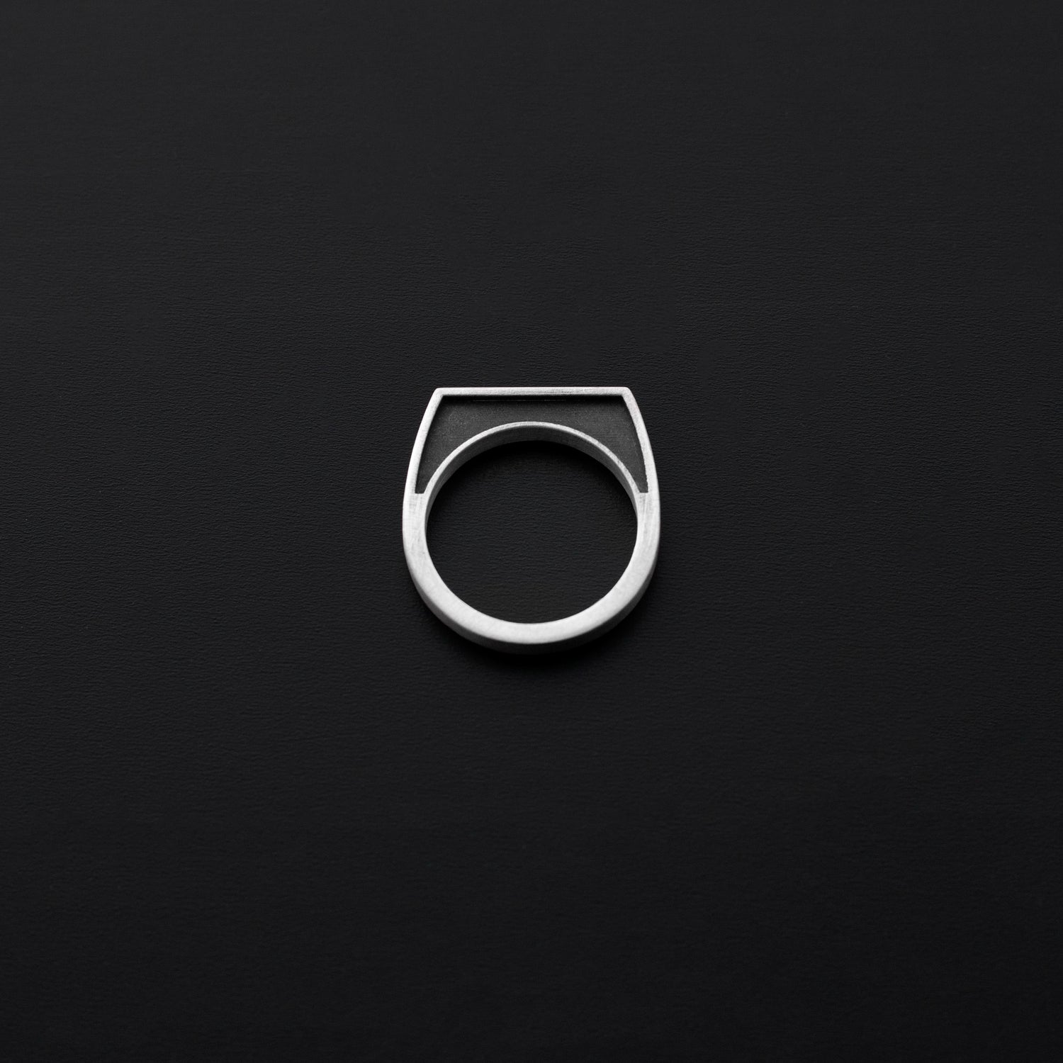 Fabricated from .925 silver, this unisex design is locally crafted in equal parts by machine and hand. Uniquely painted oxidation over satin finish.