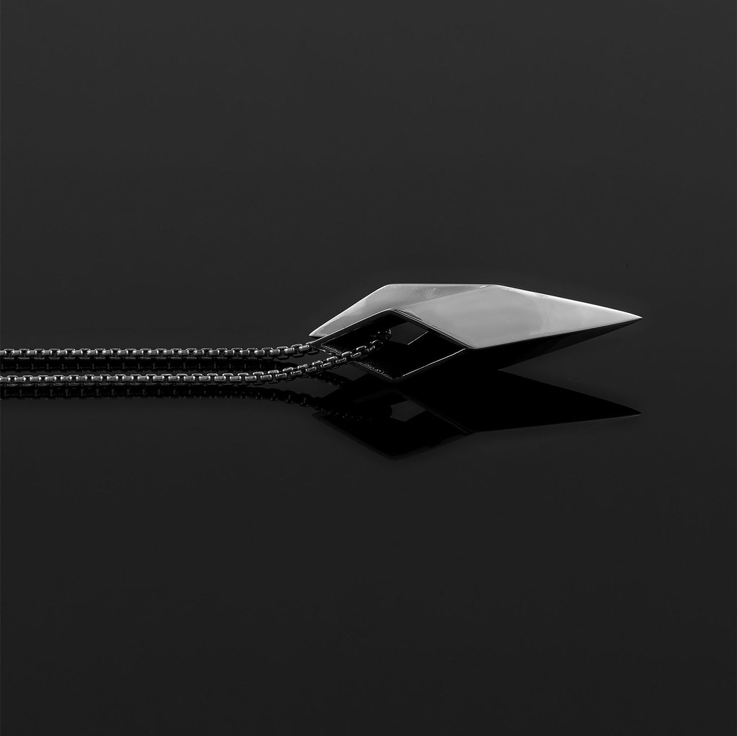Fabricated from .925 silver, this unisex design is locally crafted in equal parts by machine and hand. Uniquely painted oxidation over satin finish.