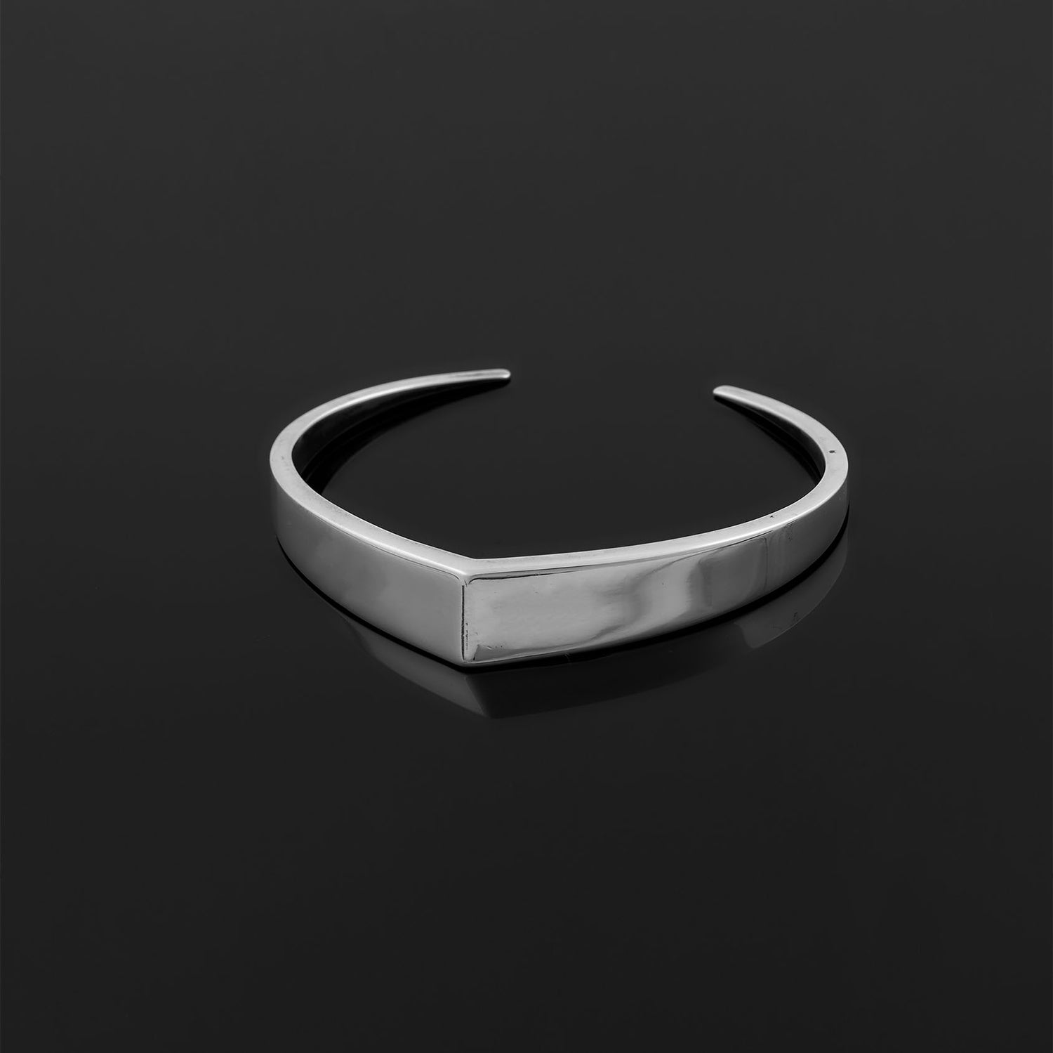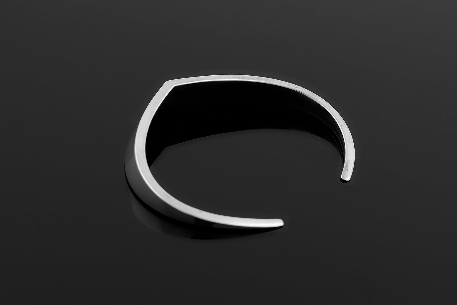 Fabricated from .925 silver, this unisex design is locally crafted in equal parts by machine and hand. Uniquely painted oxidation over satin finish.