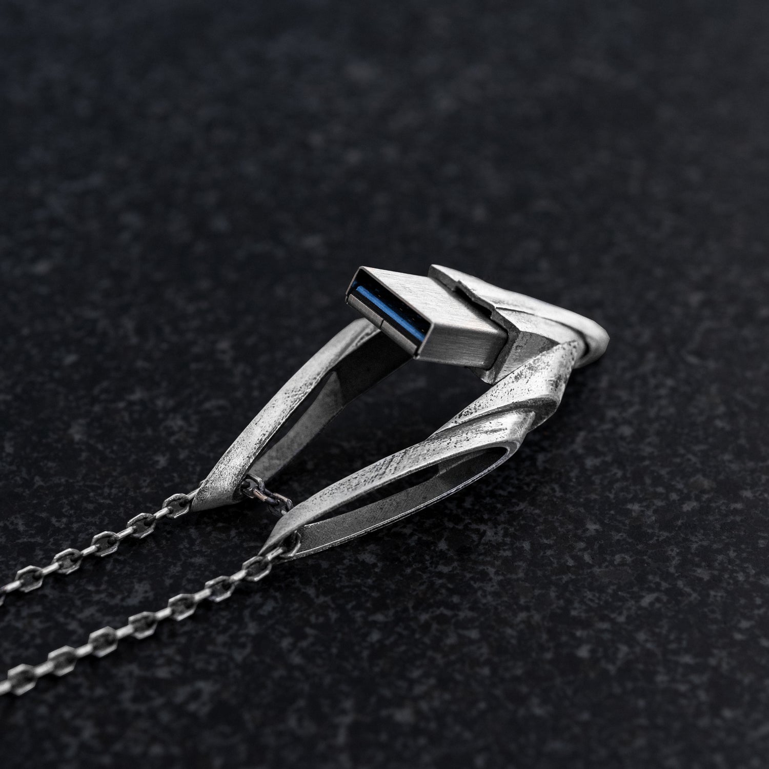 This custom silver necklace integrates 128gb of storage and 3.1 ultrafit. With special requests for a USB design by countless musicians over the years, the San Francisco pendant is also available for 256gb upgrade.