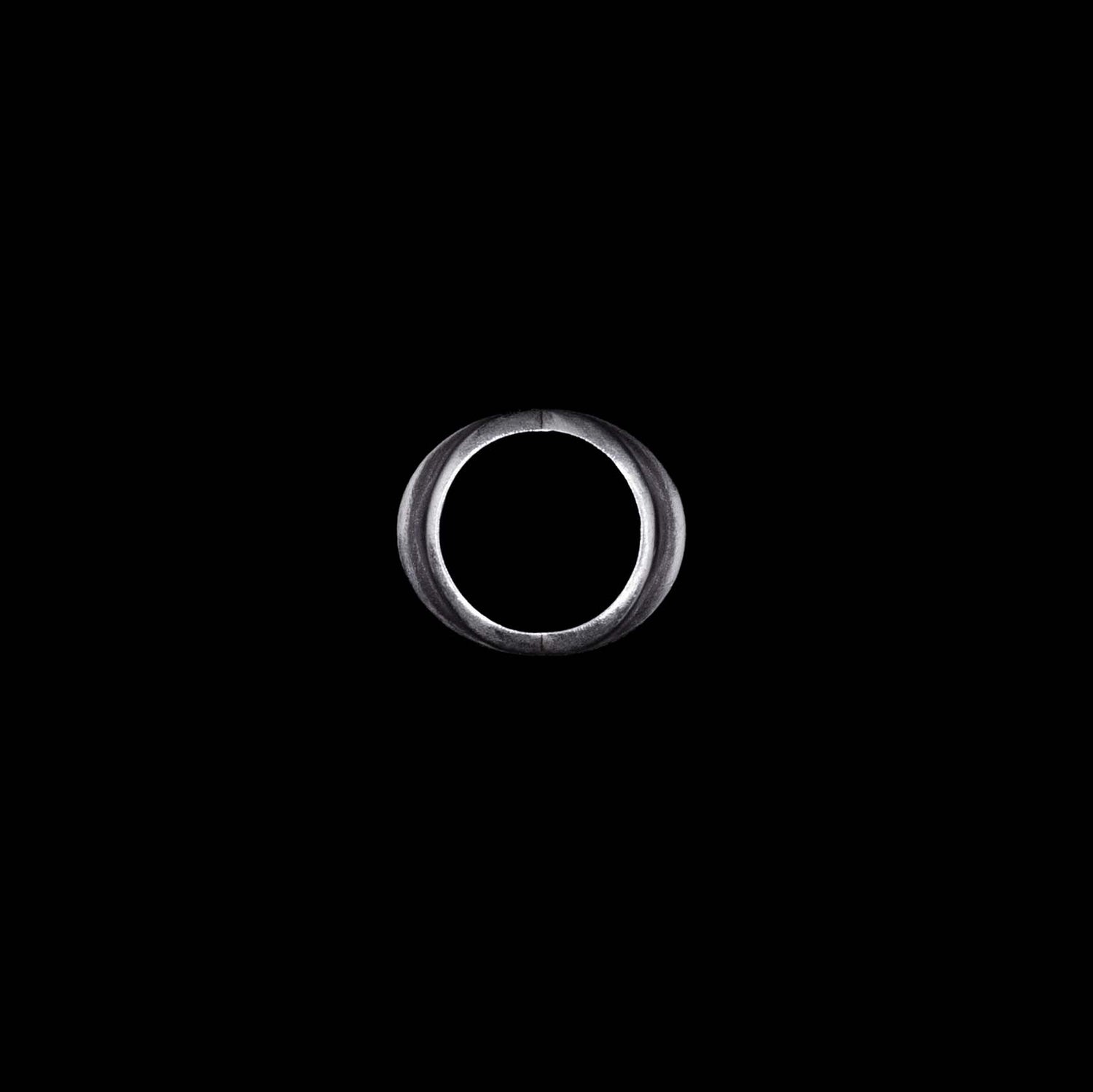 Fabricated from .925 silver, this unisex design is locally crafted in equal parts by machine and hand. Uniquely painted oxidation over satin finish.