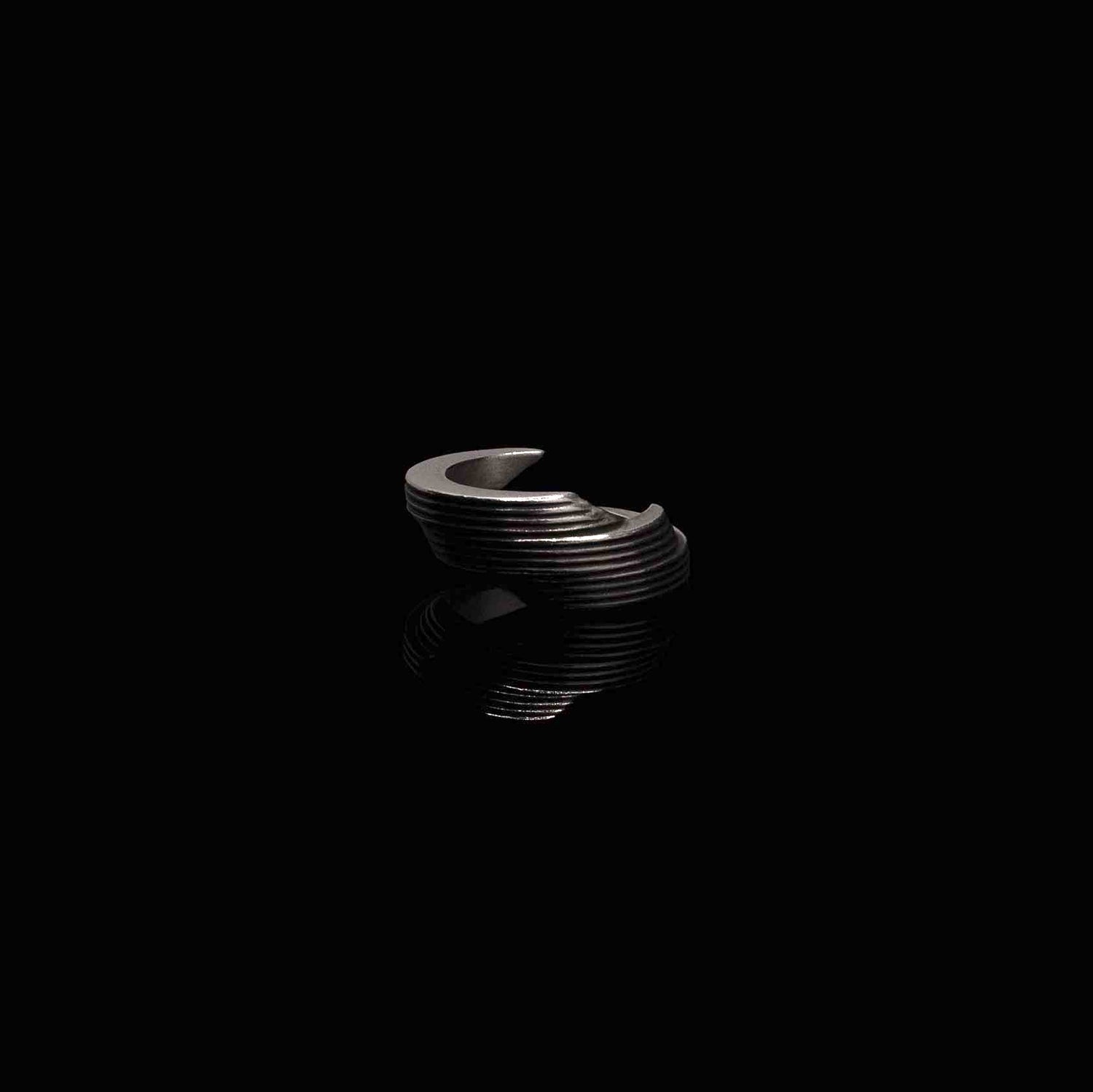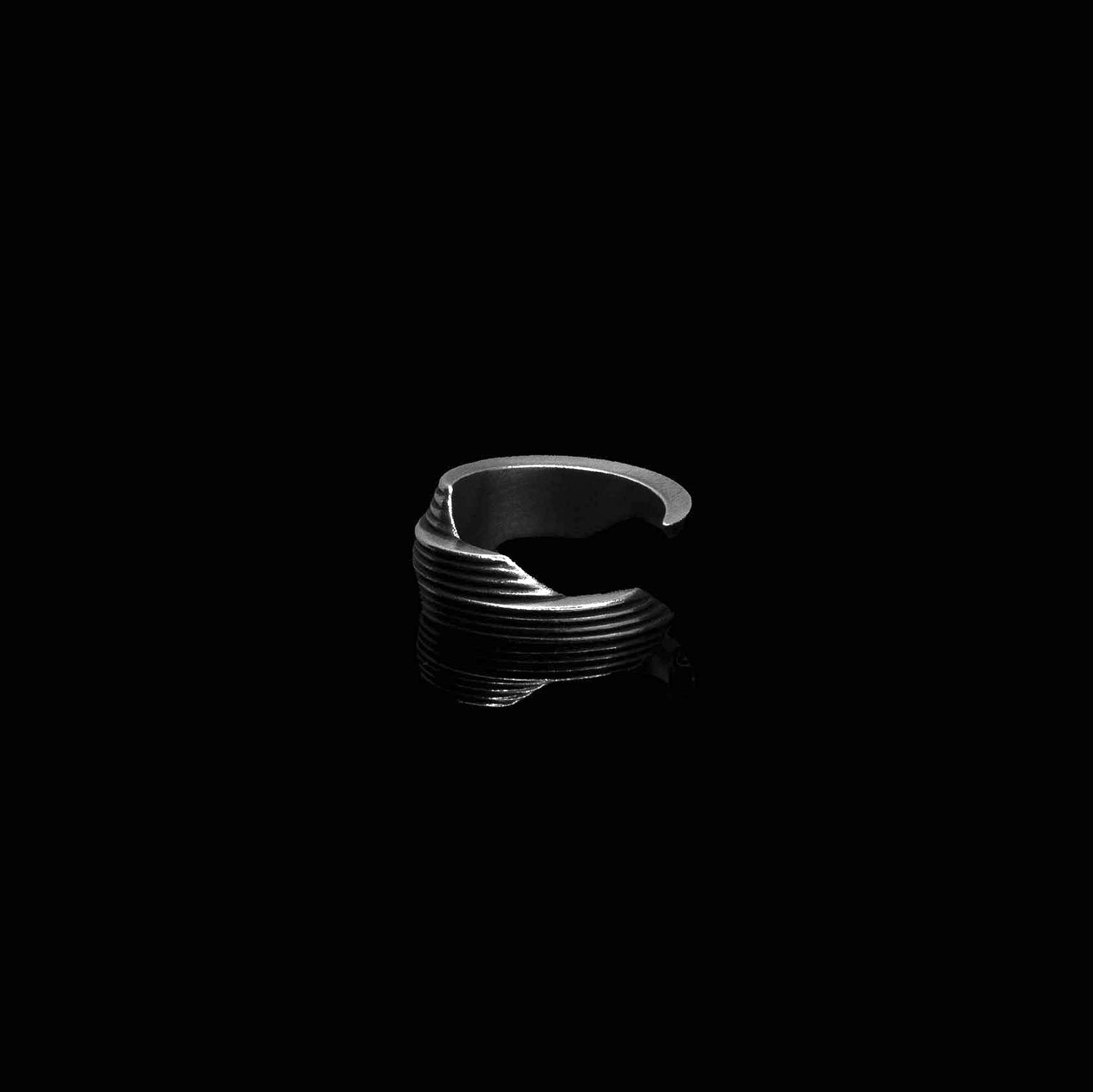 Fabricated from .925 silver, this unisex design is locally crafted in equal parts by machine and hand. Uniquely painted oxidation over satin finish.